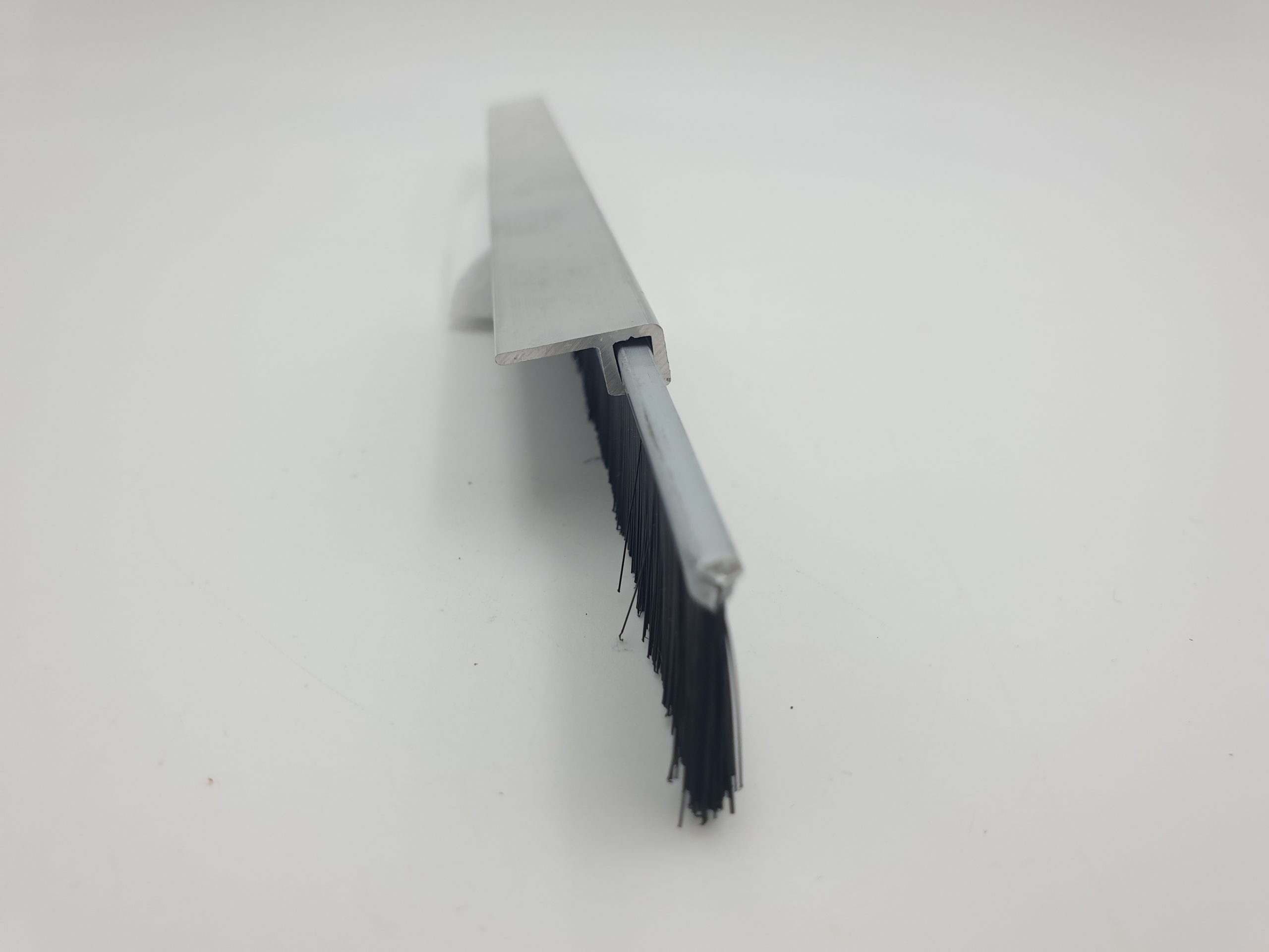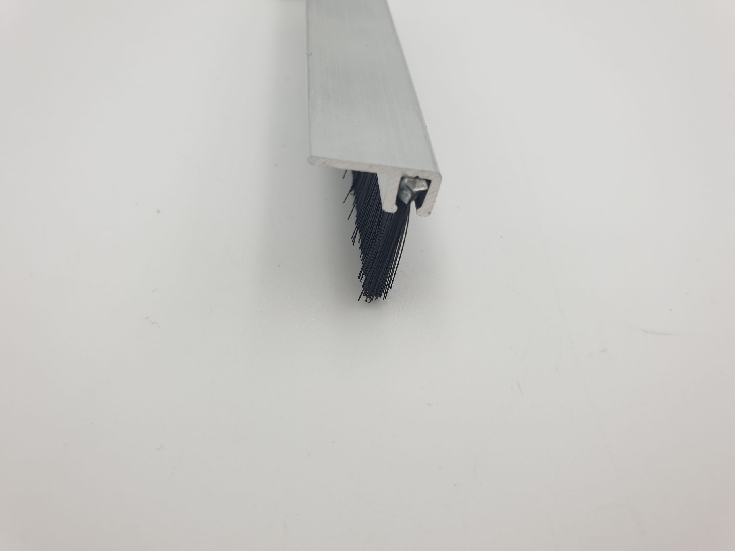 Cepillo strip – F3 Cepillo Burlete Bajo Puerta Perfil Aluminio tipo burlete bajopuerta garaje e industrial ideal para múltiples aplicaciones como obturación de ranuras de la parte inferior de una puerta y el suelo en garajes. También para ranuras en ventanas entre persiana y pared. Cepillos de obturación y aislamiento.