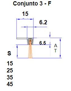 Conjunto de 2 piezas; perfil en forma de «F» de aluminio ala largo 15mm + cepillo con fibra polipropileno negro liso con tratamiento anti-UV. Apto intemperie.